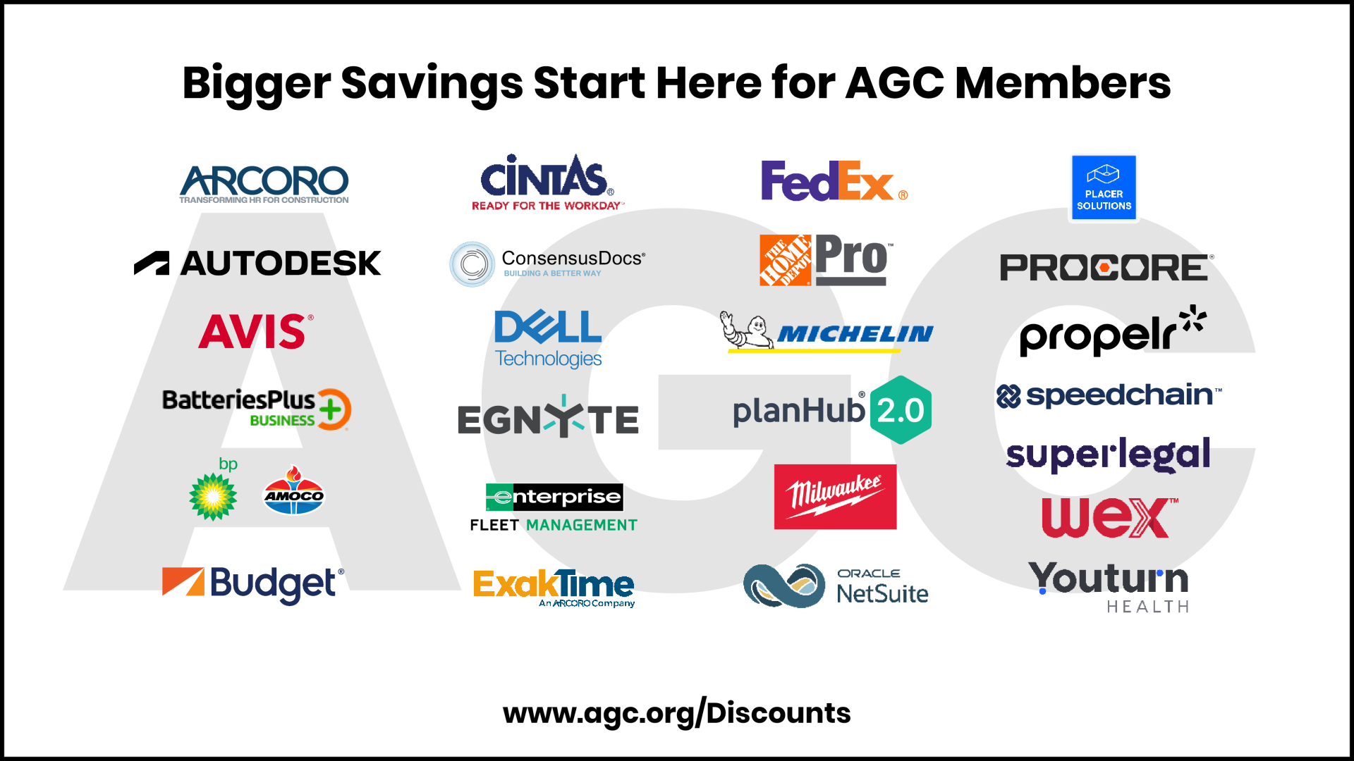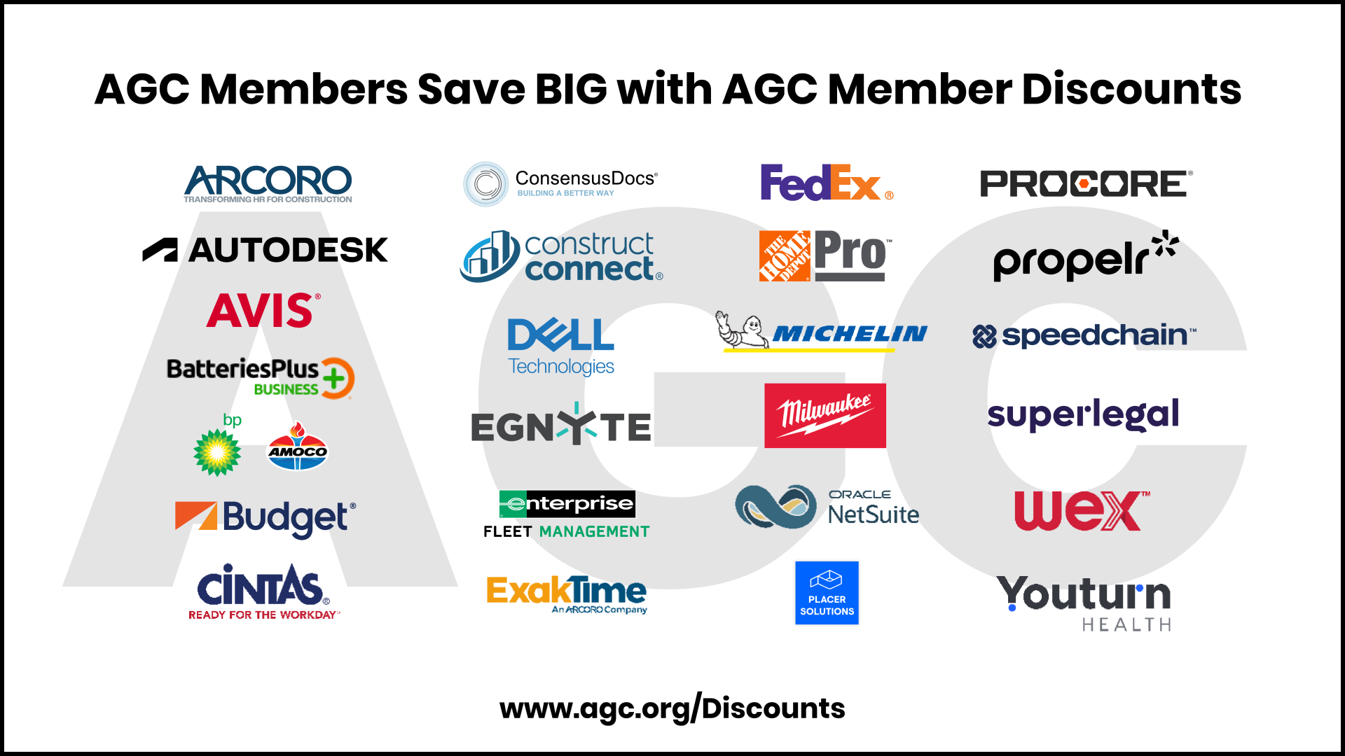 Our value-added discounts provide a competitive advantage that can set your business apart from others in the industry. AGC Member Discount Programs are just one of the many benefits of being an AGC member, that aims to help our members succeed and grow.