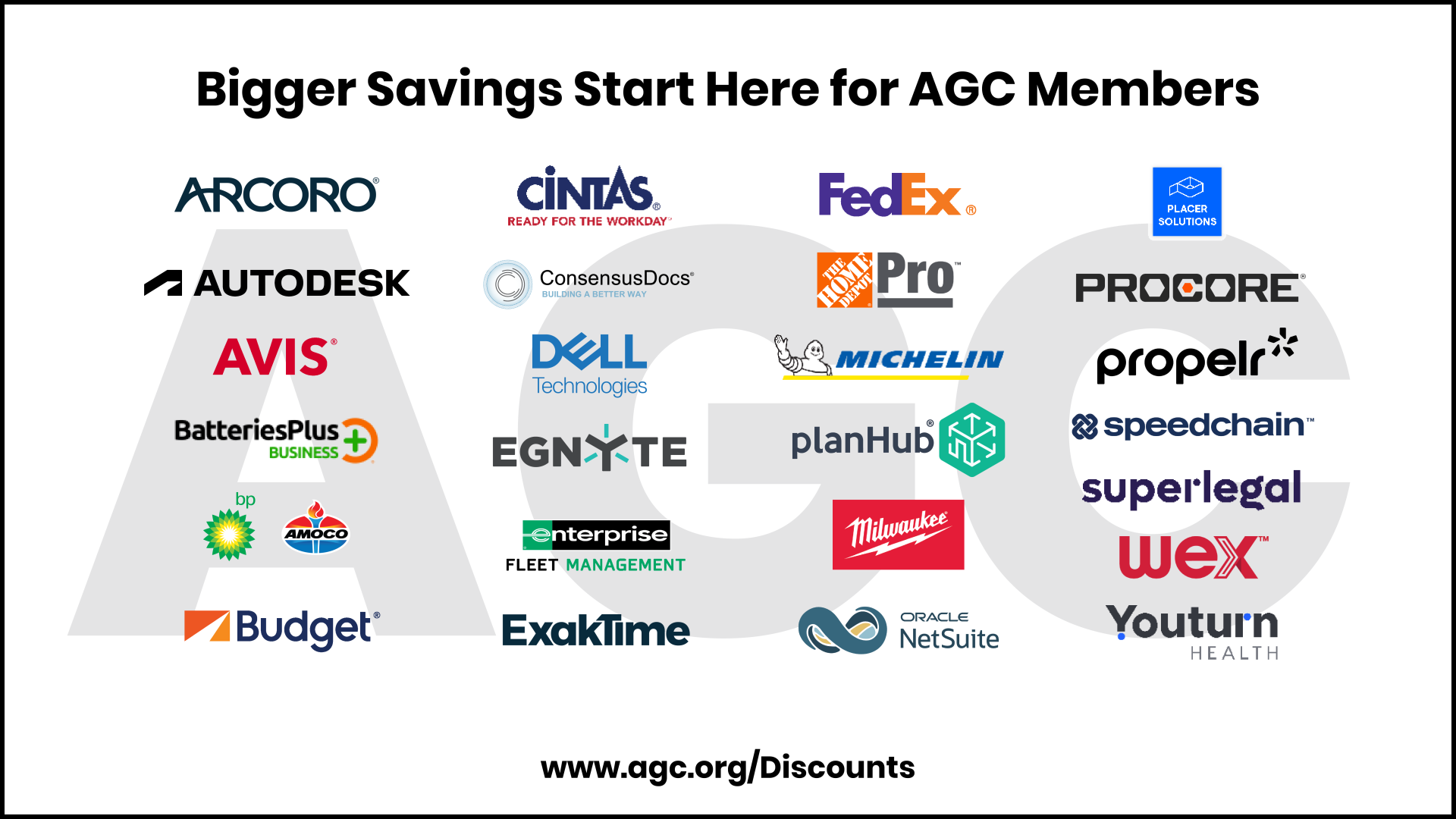 Our value-added discounts provide a competitive advantage that can set your business apart from others in the industry. AGC Member Discount Programs are just one of the many benefits of being an AGC member, that aims to help our members succeed and grow.