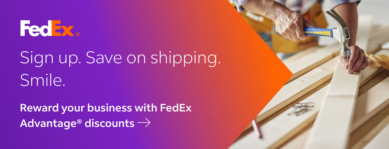 ⁺ FedEx shipping discounts are off standard list rates and cannot be combined with other offers or discounts. Discounts are exclusive of any FedEx surcharges, premiums, minimums, accessorial charges or special handling fees. Subject to minimum charges set forth in the FedEx Service Guide which can be found at fedex.com. Eligible services and discounts subject to change. Discounts include a 5% discount for creating shipping labels for eligible FedEx Express® shipments using FedEx Ship Manager® at fedex.com or other electronic shipping solutions. For eligible FedEx® services, rates and electronic shipping solutions please call 1.800.GoFedEx 1.800.463.3339. See the applicable FedEx Service Guide or FXF 100 Series Rules Tariff for terms and conditions of service offers and money-back guarantee programs.